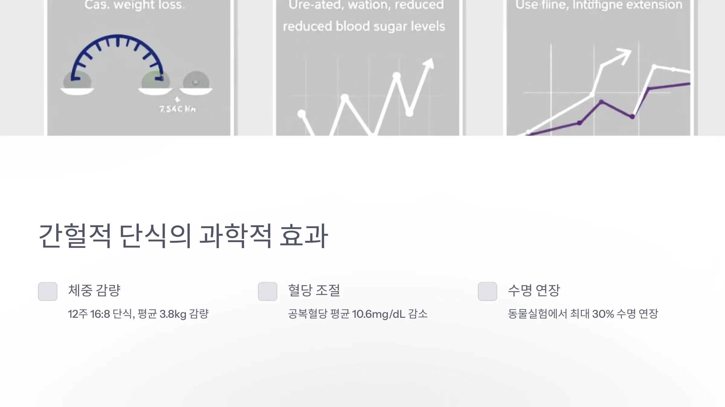 동물실험에서는 간헐적 단식이 수명을 최대 30% 연장시킬 수 있다는 결과가 나왔으며, 인간 대상 연구에서도 노화 관련 바이오마커가 개선되는 것으로 나타났습니다.